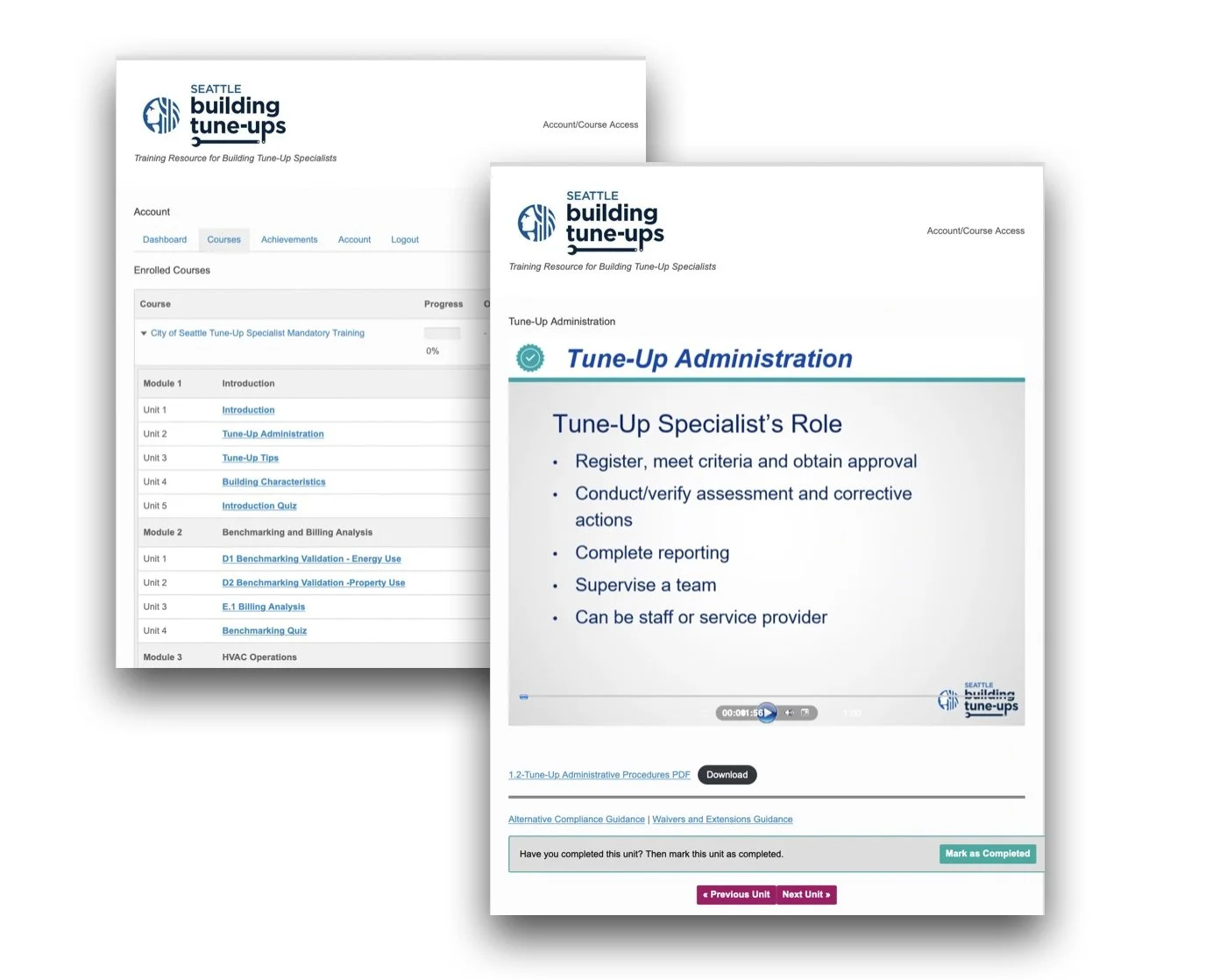 Following the first round of mandated building tune-up’s, the City determined additional training was needed to insure tune-up providers were interpreting and applying the requirements as required. Windward was contracted to provide a complete online training solution.